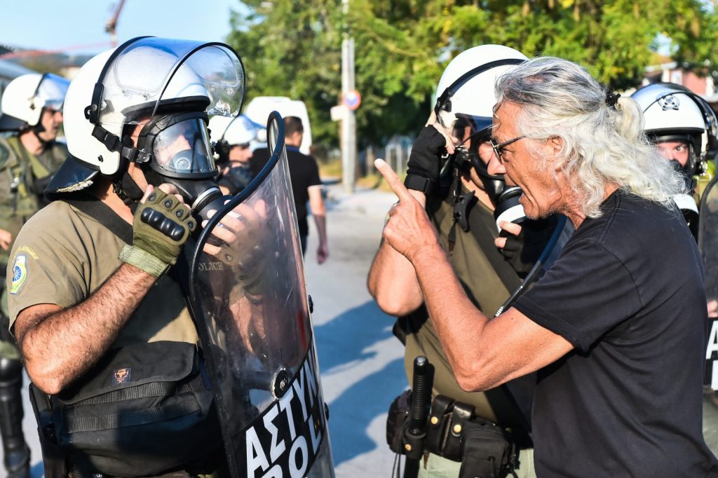Τα ΜΑΤ, που είχαν κάνει αισθητή από νωρίς την παρουσία τους στην περιοχή πέριξ του λιμανιού της πόλης, επενέβησαν, επιχειρώντας να διαλύσουν την ειρηνική και συμβολική διαμαρτυρία και να ανοίξουν τον δρόμο, με αποτέλεσμα να ακολουθήσει ένταση, σπρωξίματα και λεκτικές αντιπαραθέσεις με τους συγκεντρωμένους.