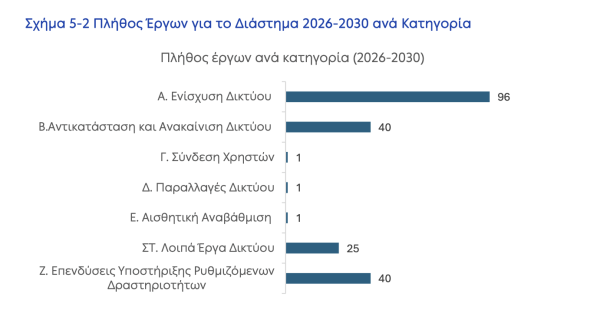 Το τρίτο πακέτο έργων ύψους 56 εκατ. ευρώ έχει να κάνει με την ενίσχυση της ανθεκτικότητας και την προστασία του περιβάλλοντος. Περίπου 1.800 χλμ. δικτύου το 2026 θα αναδρομολογηθεί και υπογειοποιηθεί. Αφορά δίκτυο με προτεραιότητα σε περιοχές ευάλωτες στην κλιματική αλλαγή.