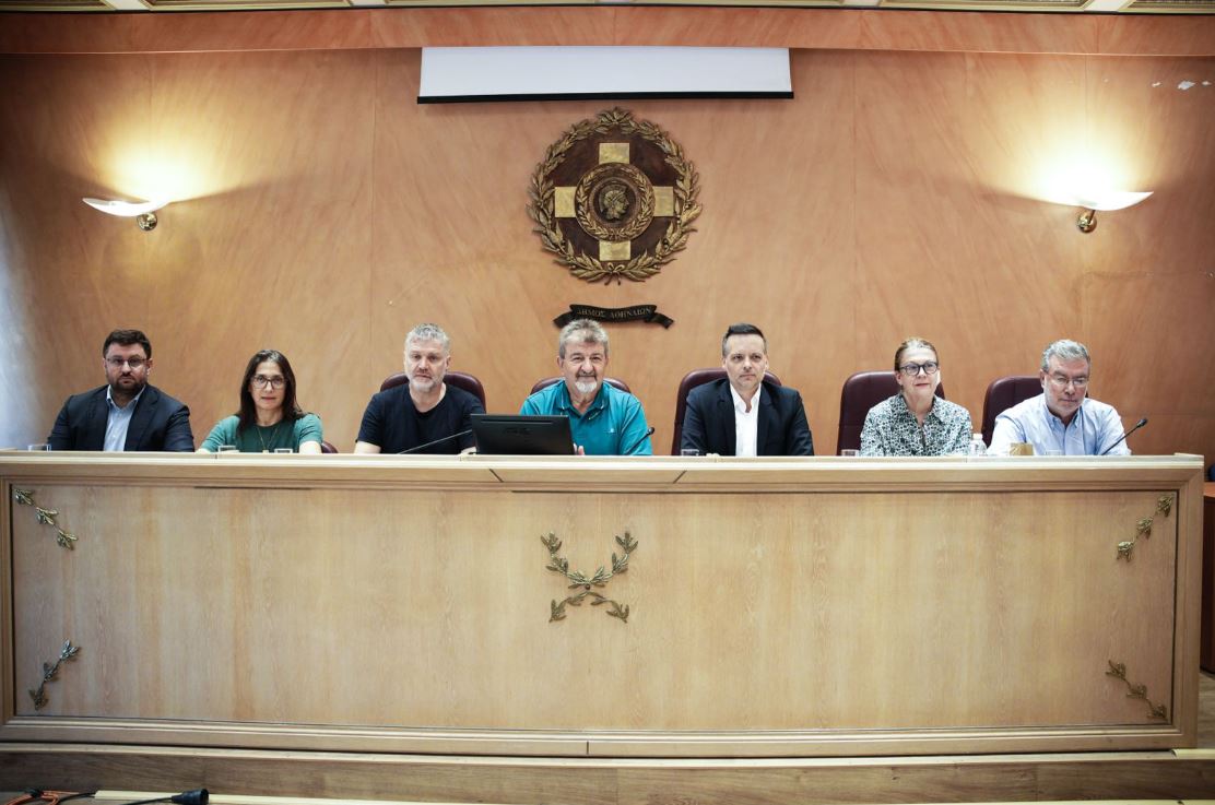 Από αριστερά, Κώστας Ζαχαριάδης, Μαρία Ανδρούτσου (πρ. δήμαρχος Αγίου Δημητρίου), Αντώνης Γκουντάρας (δήμαρχος Αγιάς), Σίμος Δανιηλίδης (δήμαρχος Νεάπολης – Συκεών), Χάρης Δούκας, Τίνα Καφατσάκη (δήμαρχος Ζωγράφου), Ανδρέας Ευθυμίου (δήμαρχος Μοσχάτου -Ταύρου)