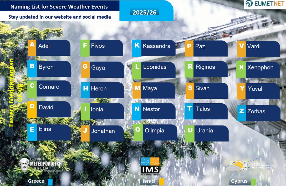 Από τo 2021 η ΕΜΥ, σε συνεργασία με τις Εθνικές Μετεωρολογικές Υπηρεσίες της Κύπρου και του Ισραήλ, συγκρότησε την Ομάδα Ανατολικής Μεσογείου, με σκοπό την ονοματοδοσία των μετεωρολογικών συστημάτων που προβλέπεται να προκαλέσουν πολύ ισχυρά φαινόμενα, κατά τη διάρκεια της ψυχρής αλλά και της θερμής περιόδου κάθε έτους.