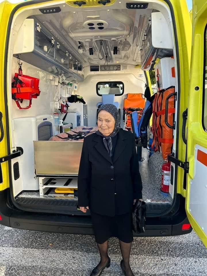 Η συνταξιούχος αγρότισσα, μετά από πολλές δεκαετίες εργασίας δώρισε, ένα ολοκαίνουργιο και υπερσύγχρονο ασθενοφόρο, αξίας 65.000 ευρώ, στον τομέα ΕΚΑΒ Μεσολογγίου.