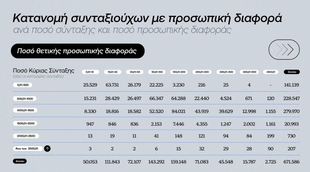 Άμεσα ωφελούμενοι είναι περίπου 671.000 συνταξιούχοι με προσωπική διαφορά.