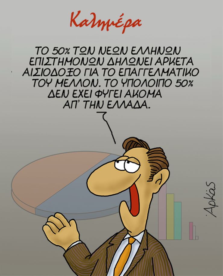Μια αιχμηρή «Καλημέρα» που όμως εμπεριέχει μεγάλη δόση χιούμορ που προκαλεί πηγαίο το γέλιο – παρά το γεγονός ότι το μήνυμά της δεν είναι θετικό – μάς απευθύνει σήμερα ο Αρκάς, Τετάρτη 10 Σεπτεμβρίου 2025.