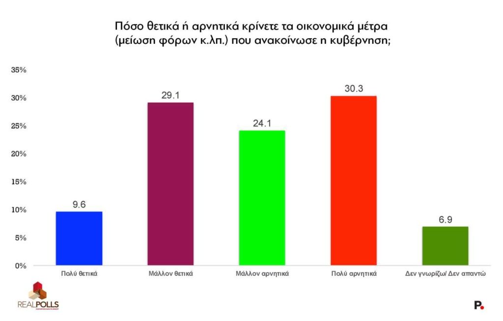 Σε ό,τι αφορά τα μέτρα που ανακοίνωσε το Σαββατοκύριακο ο κ. Μητσοτάκης το 38,7% των πολιτών τα κρίνει είτε «πολύ θετικά», είτε «μάλλον θετικά», ενώ ένα 54,4% τα κρίνει αρνητικά (Πίνακας V).