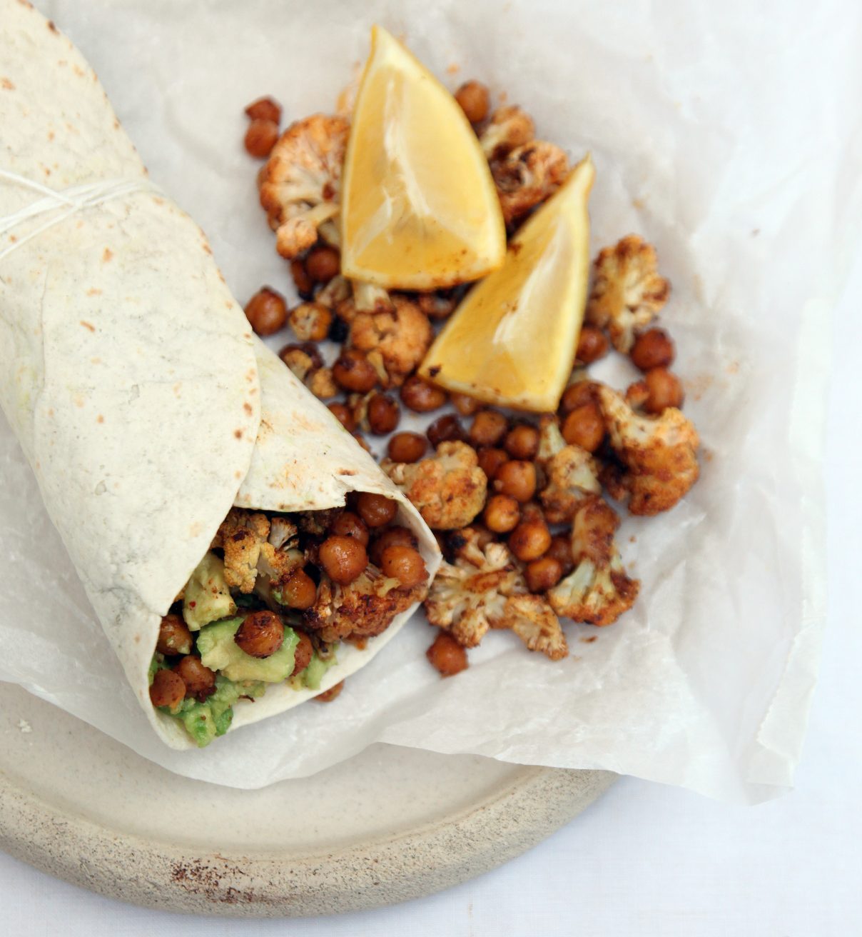 Wrap με ψητό κουνουπίδι, ρεβίθια και κρέμα αβοκάντο