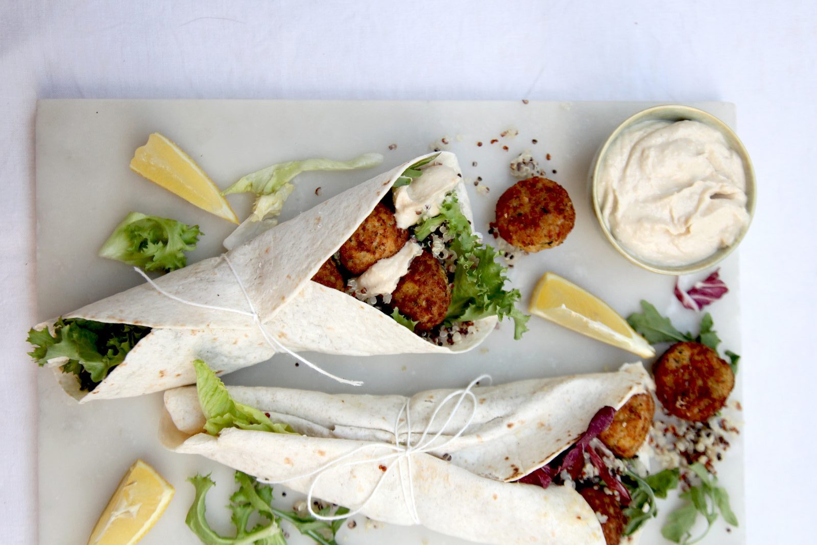 Wrap με φαλάφελ, χούμους, κινόα και μαρούλι