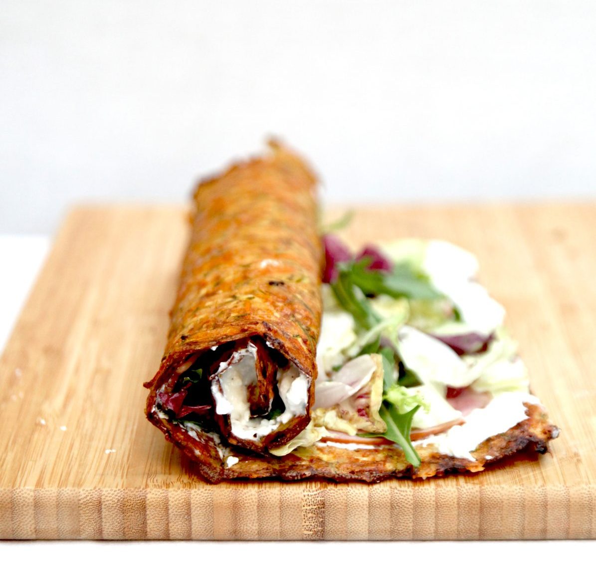 Wrap με ζύμη από κολοκύθι, καρότο και πατάτα, με τυρί κρέμα και καπνιστό ζαμπόν
