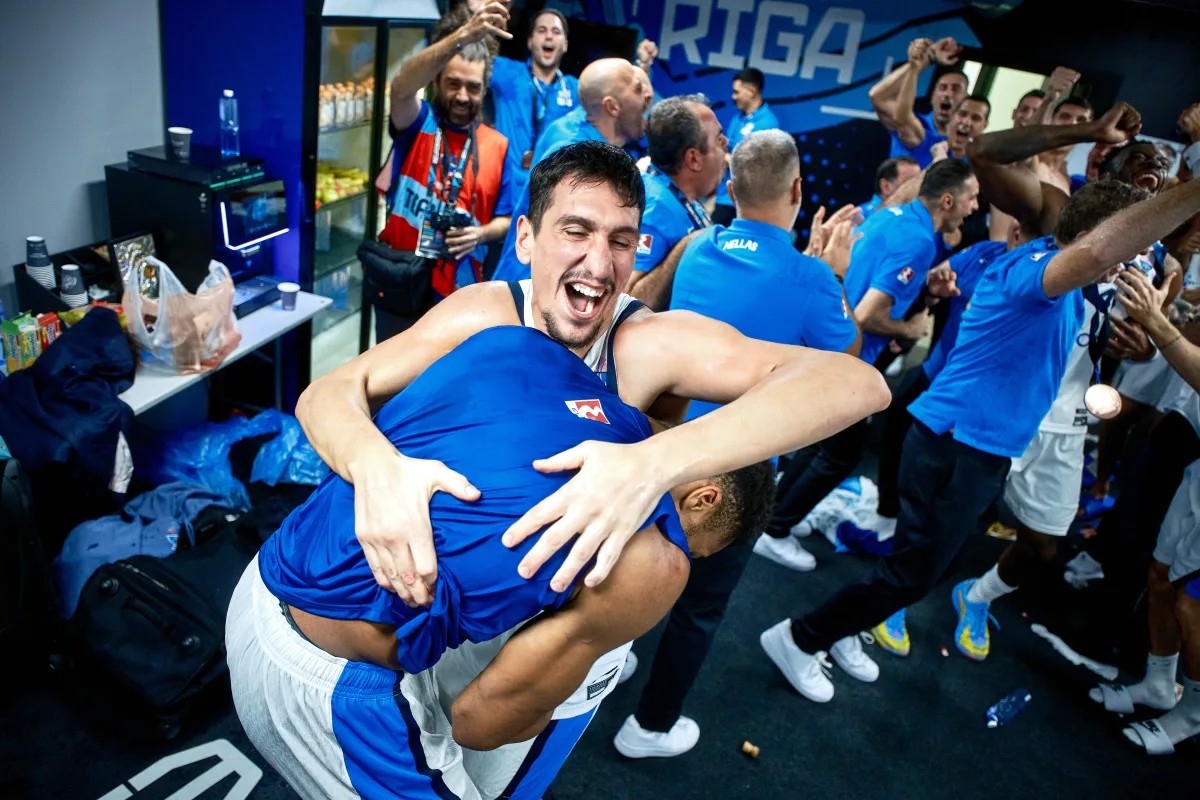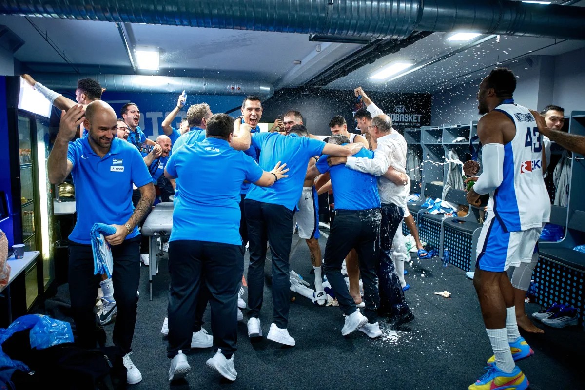 "Not a single piece of cloth will remain dry" – Greece locker room 🇬🇷#EuroBasket pic.twitter.com/HXPumGsjuX