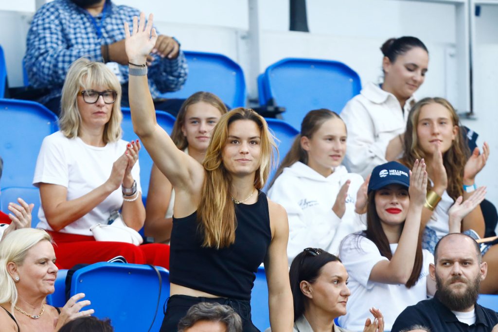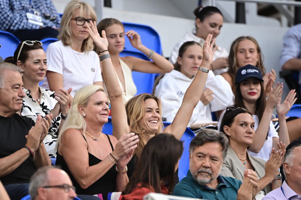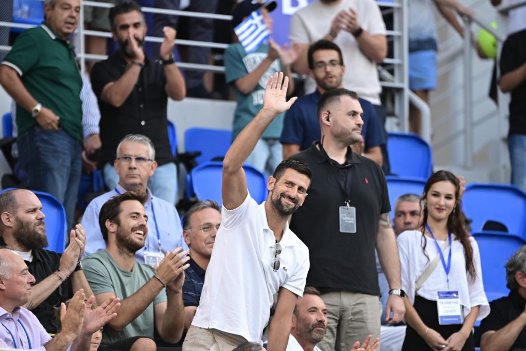 Λίγο αργότερα, στις κερκίδες κοντά του βρέθηκε και η ελληνίδα τενίστρια, Μαρία Σάκκαρη μαζί με τη μητέρα της, Αγγελική Κανελλοπούλου. Οι δύο πρωταθλητές της αντισφαίρισης αγκαλιάστηκαν και κάθισαν μαζί να παρακολουθήσουν την αναμέτρηση του Στέφανου Τσιτσιπά με τον Joao Fonseca.