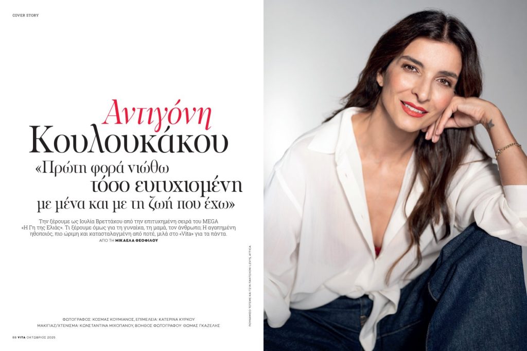 Στο εξώφυλλο, η εντυπωσιακή Αντιγόνη Κουλουκάκου, πρωταγωνίστρια της δημοφιλούς σειράς του MEGA «Η Γη της Ελιάς». Μιλά για τον ρόλο της, τη μητρότητα, τον έρωτα, την ομορφιά, το χρόνο, αλλά και για τα προτερήματα και τα ελαττώματά της, δηλώνοντας πιο ευτυχισμένη από ποτέ