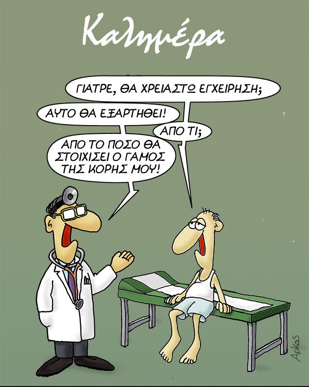 Ο διάσημος σκιτσογράφος με το σημερινό του σκίτσο αναφέρεται με καυστικό χιούμορ στον τρόπο που λειτουργεί στις ημέρες μας που χαρακτηρίζεται από την πλήρη εμπορευματοποίηση των υπηρεσιών αλλά και κοινωνικών αγαθών όπως η υγεία.