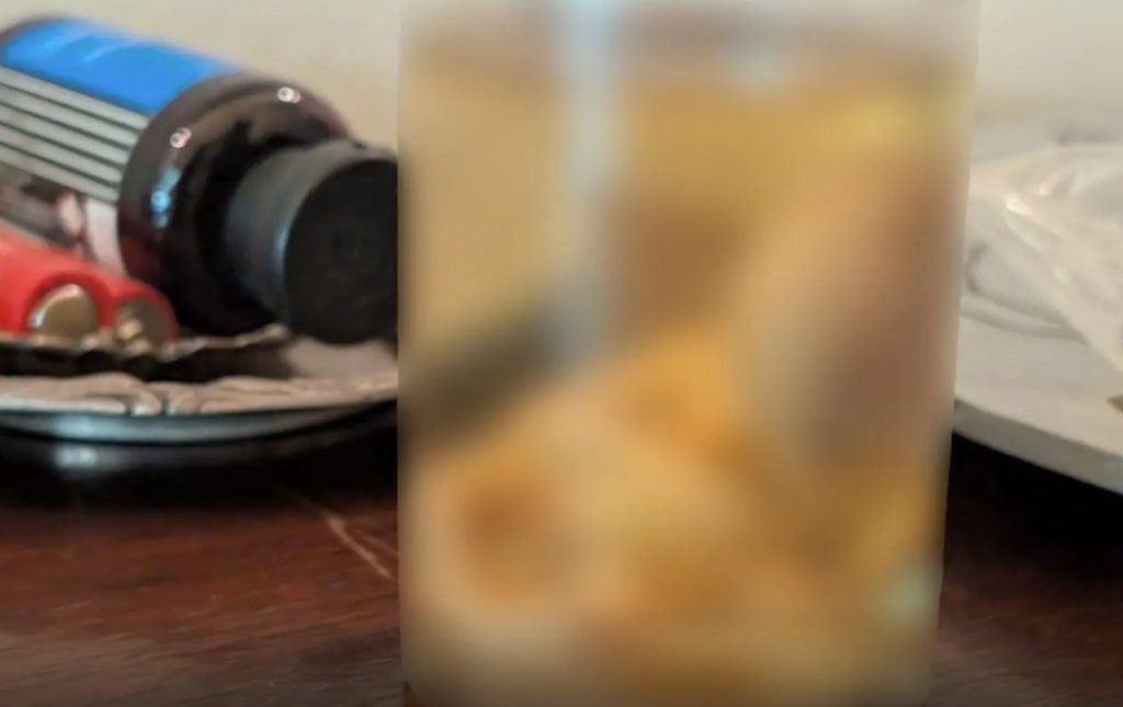 Κατά την έρευνα στο σπίτι του εντοπίστηκαν και κατασχέθηκαν συνολικά 39 αρχαία και πιθανώς αρχαία αντικείμενα, όπως μαρμάρινες και πήλινες φιάλες και κεφαλές, πυξίδες, ειδώλια, κύπελλα, αμφορέας, αγγείο, αρύβαλλος, οινοχόη, κυάθια, όστρακα και τμήμα λίθου. Ωστόσο, το στοιχείο που προκάλεσε τη μεγαλύτερη αίσθηση ήταν η ανακάλυψη φιάλης με υγρό που περιείχε ανθρώπινο έμβρυο.