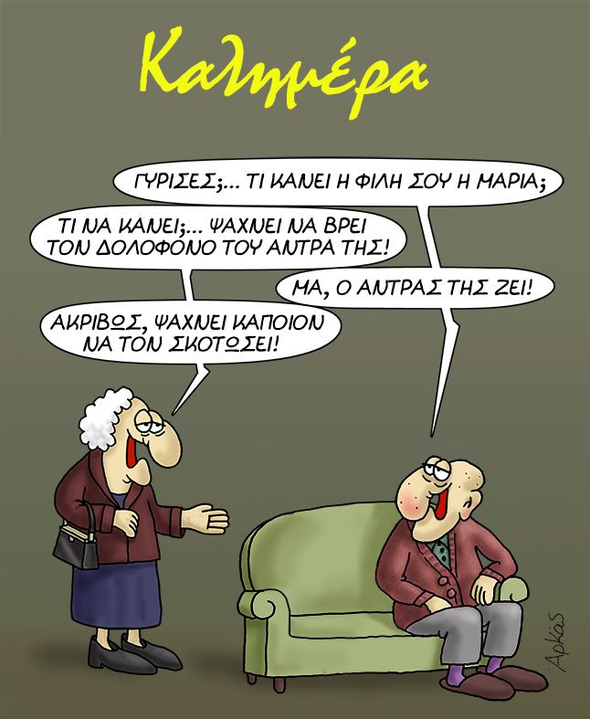 Ξεκαρδιστική η «Καλημέρα» της Κυριακής. Ο σκιτσογράφος Αρκάς, σήμερα, Κυριακή 28 Σεπτεμβρίου 2028, μάς καλημερίζει με το ζευγάρι των ηλικιωμένων.