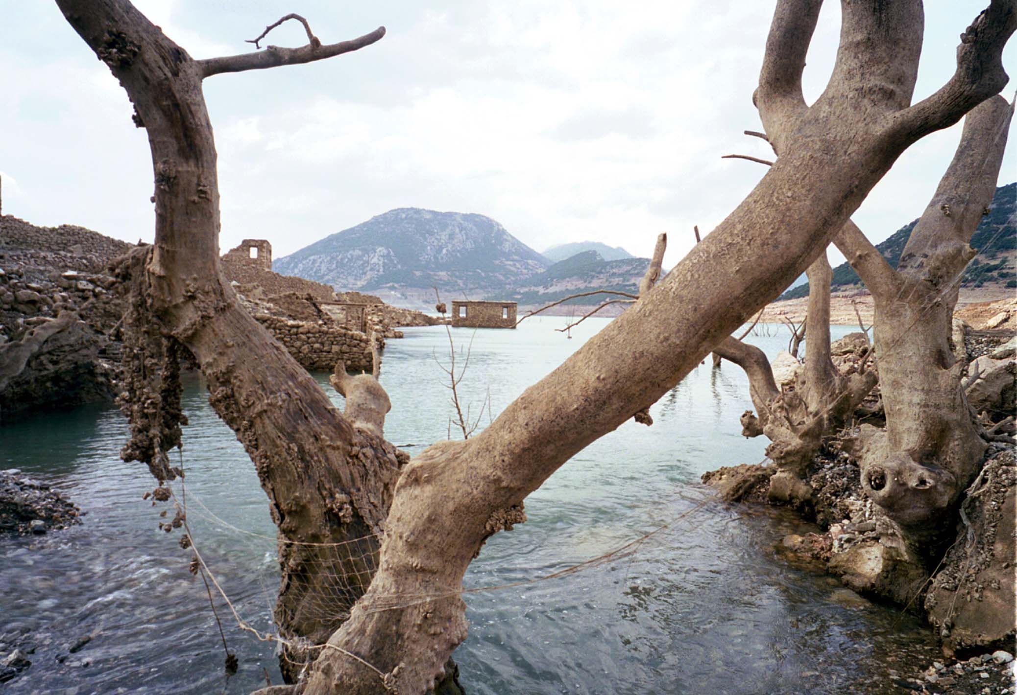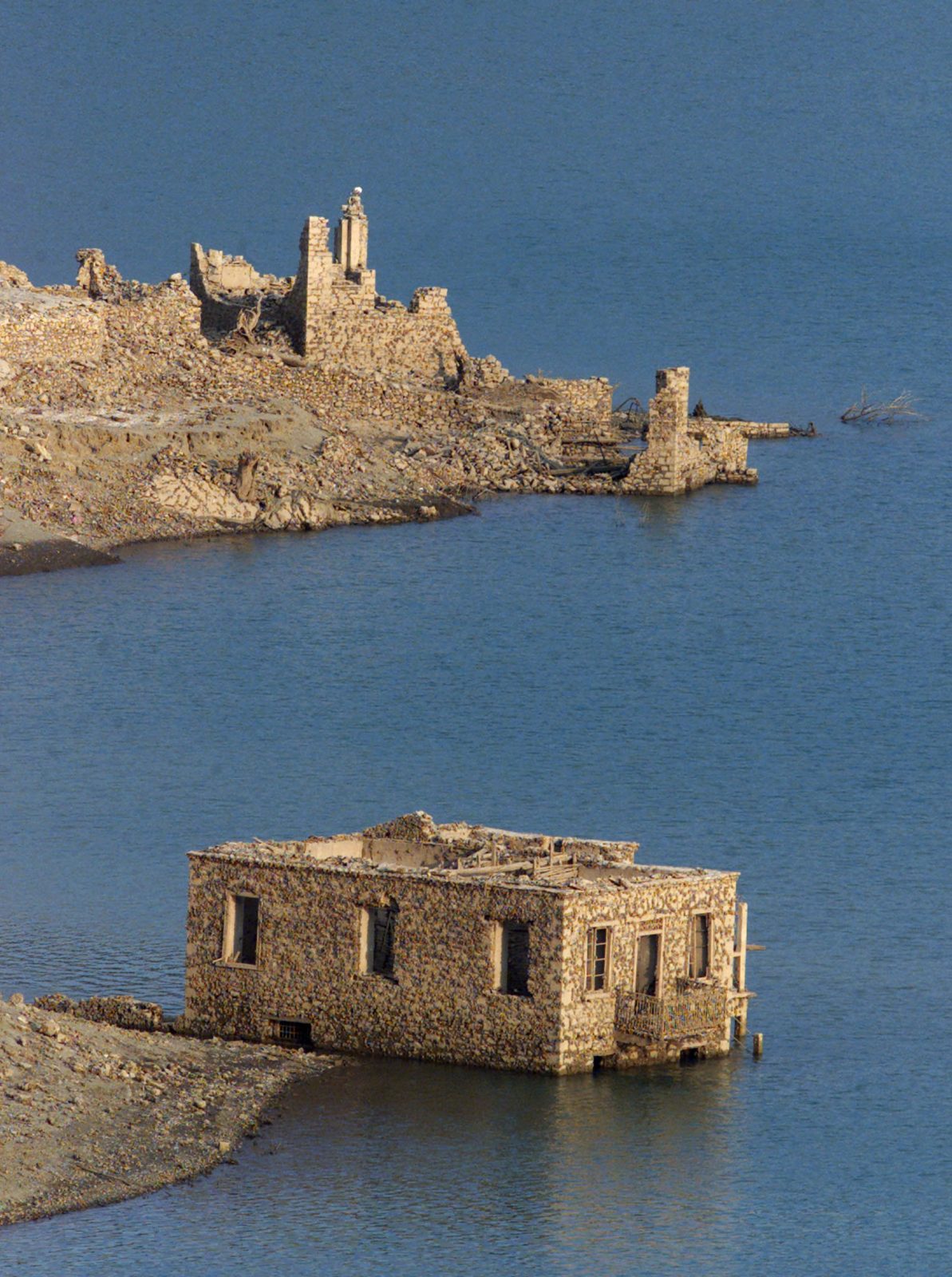 Τις τελευταίες εβδομάδες, αυτές οι μνήμες ξαναζωντανεύουν καθώς παρακολουθούμε την αντίστροφη πορεία. Την στάθμη του νερού να υποχωρεί, λόγω της παρατεταμένης ανομβρίας στη χαμηλότερη έκταση από το 2014 και τα ερείπια του πετρόκτιστου χωριού να αναδύονται ξανά στην επιφάνεια (στις 9 Σεπτεμβρίου η επιφάνεια της λίμνης μετρήθηκε περίπου στα 8,9 τετρ. χλμ., τιμή-καμπανάκι που τεκμηρίωσε το Παρατηρητήριο της ΜΕΤΕΟ/ΕΑΑ με δορυφορικά δεδομένα Sentinel-2).