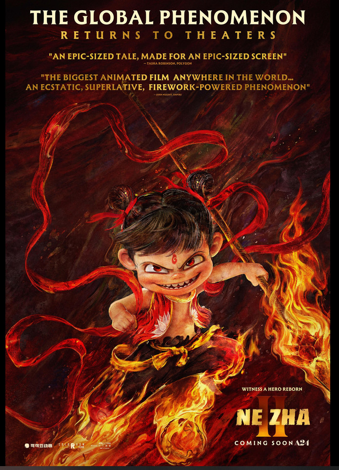 Στις αίθουσες προβάλλεται και το κινέζικο animation «Ne Zha 2 (Nezha: Mo tong nao hai, Κίνα, 2025) που διαφημίζεται ως «η νούμερο 1 πιο επιτυχημένη ταινία κινουμένων σχεδίων σε όλο τον κόσμο» καθώς οι εισπράξεις του ξεπερνούν τα 2,2 δισεκατομμύρια δολάρια.» Μάλιστα είναι η έβδομη κατά σειρά ταινία στην ιστορία του σινεμά που «έπιασε» τα δύο δισεκατομμύρια δολάρια παγκοσμίως.
