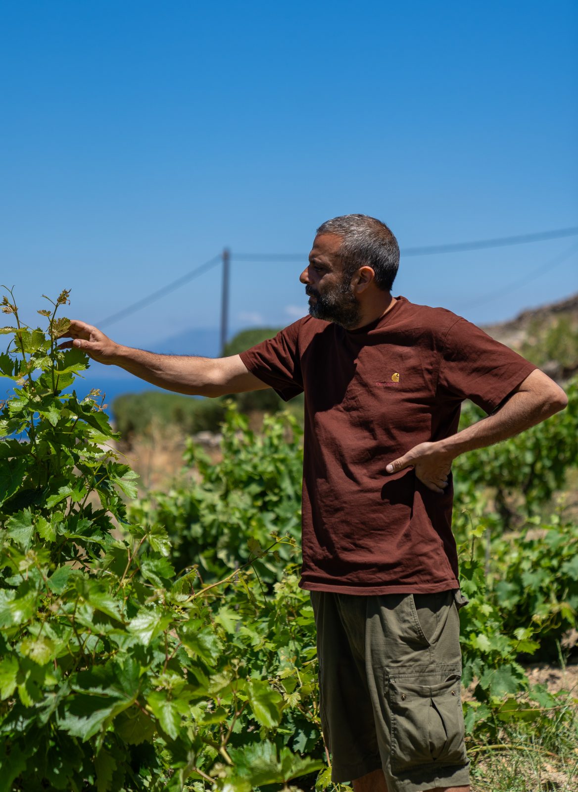 Ο Νίκος Χατζάκης στα αμπέλια που έμελλε να αγαπήσει τόσο. Φωτό: Χρήστος Καββούρης