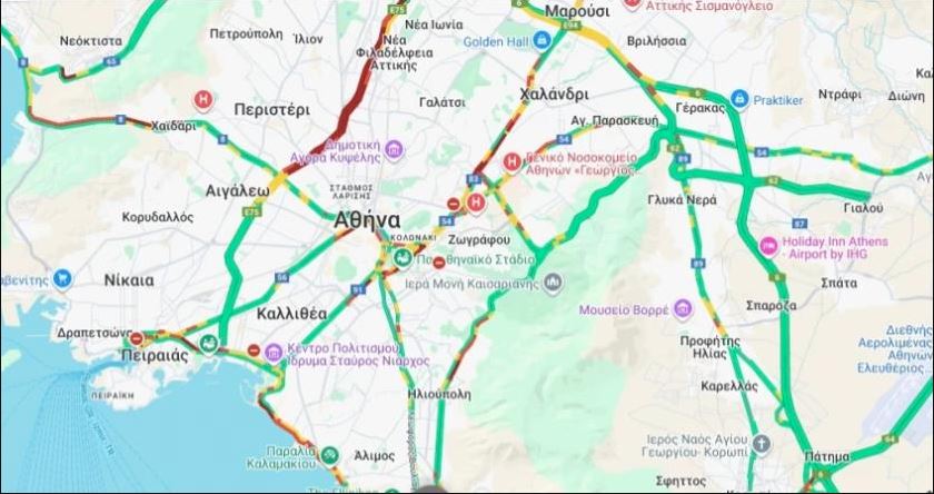 Αυξημένη κυκλοφορία οχημάτων σημειώνεται και στην Ποσειδώνος και τους δρόμους που πλαισιώνουν το λιμάνι του Πειραιά, όπως επίσης και στην Κηφισίας, τη Μεσογείων, τη Συγγρού, την Καλλιρόης, την Βασιλέως Κωνσταντίνου.
