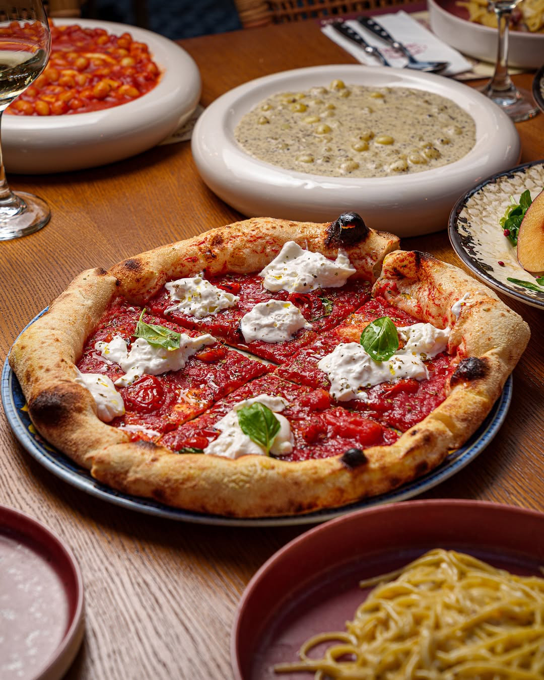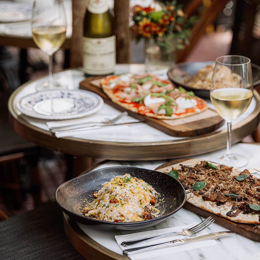 Πίτσες με ζύμη που ωριμάζει αργά, φρέσκες πάστες με καθαρές σάλτσες, αραντσίνι, vitello tonnato με καπνιστό τόνο και αγαπημένα ιταλικά γλυκά συνθέτουν τον κατάλογο του Odori Vermuteria Di Atene.