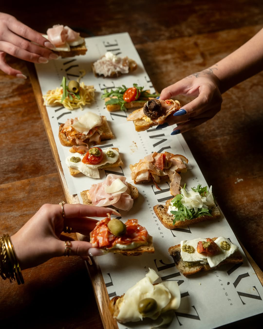 Μετά τις 6 το απόγευμα όμως, μετατρέπεται σε ιταλική σπριτσερία. Στη θέση του πρωινού πάγκου με τις ζύμες εμφανίζονται ciccheti, φτιαγμένα με υλικά από το πρωινό service ώστε να μην πάει τίποτα χαμένο. Τα μικρά πιάτα σερβίρονται δίπλα σε δροσερά aperitivi, με πρωταγωνιστή φυσικά το κλασικό spritz, αλλά και άλλες δημιουργίες με ιταλικό ταμπεραμέντο.