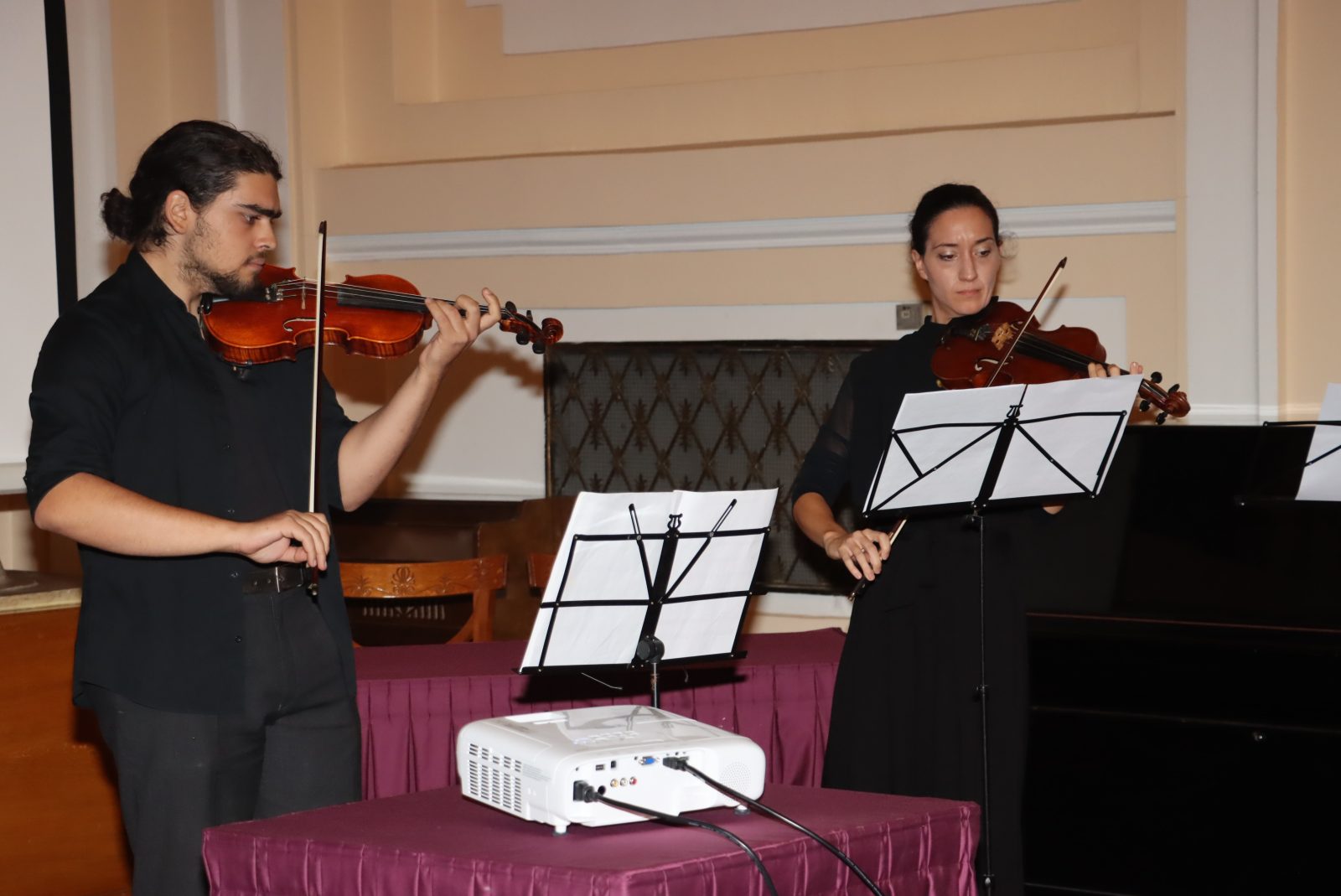 Η ατμόσφαιρα ήταν ιδιαιτέρως γιορτινή, καθώς η εκδήλωση ξεκίνησε με μουσική από την ορχήστρα του Πανεπιστημίου, ενώ στο προαύλιο, χορευτικά σχήματα με παραδοσιακές στολές παρουσίαζαν ελληνικούς χορούς.