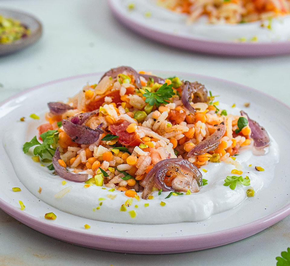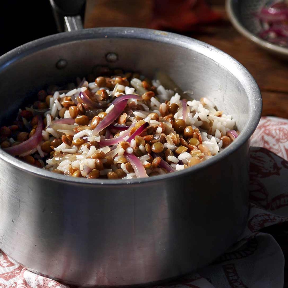 Συνταγή: Κόκκινες φακές με ρύζι και λαχανικά