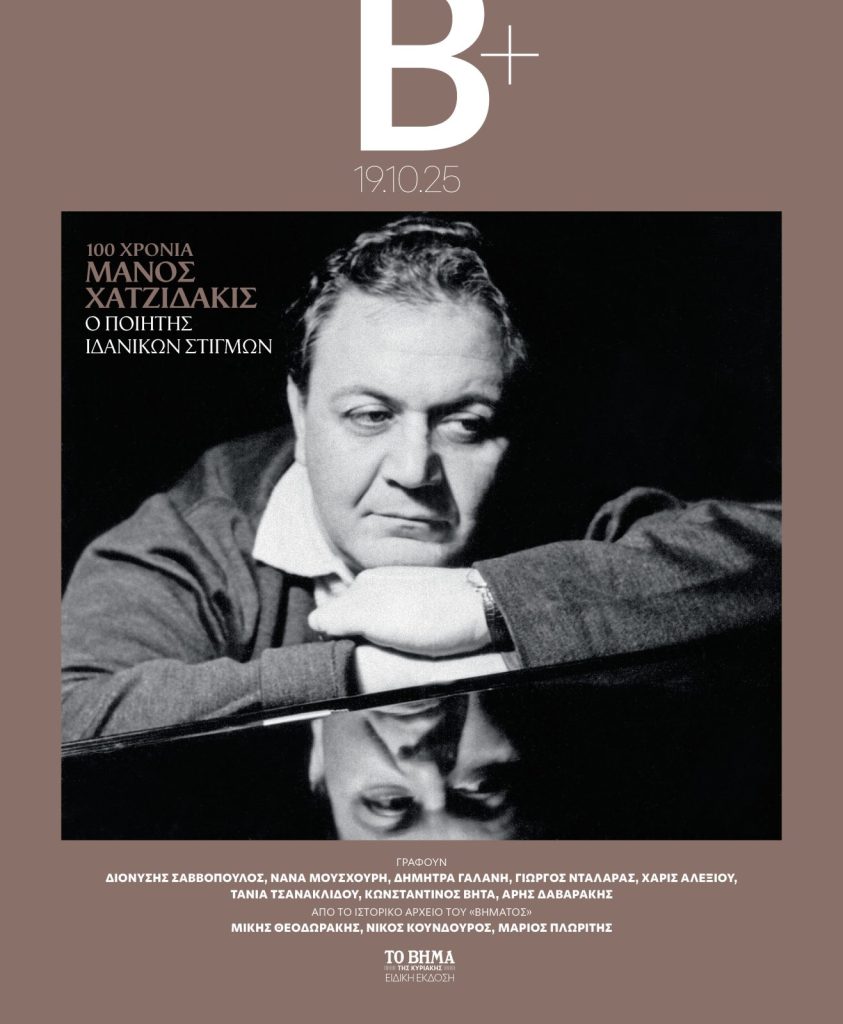 Αυτή την Κυριακή 19 Οκτωβρίου το ΒΗΜΑ εγκαινιάζει το Β+, τη νέα σειρά ειδικών θεματικών εκδόσεων, με ένα αφιέρωμα για τη συμπλήρωση 100 ετών από τη γέννηση του Μάνου Χατζιδάκι.