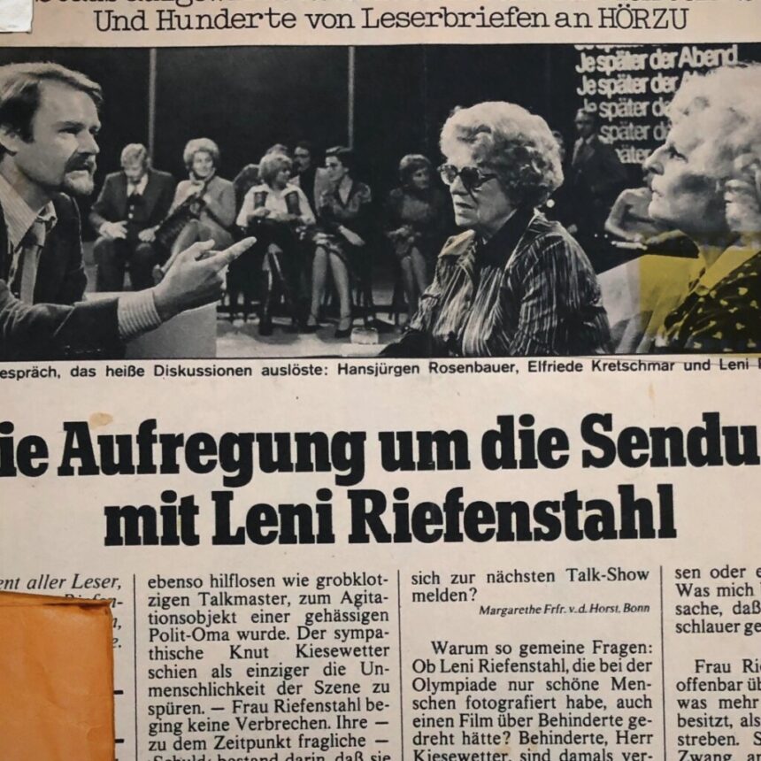 Αλλά όταν το Γ’ Ράιχ κατέρρευσε, η Ρίφενσταλ ακολούθησε και εκείνη την πτώση του. Και με αυτό το ντοκιμαντέρ ο επίσης Γερμανός Αντρέ Βέιλ καταθέτει μια «χορταστική» μελέτη του κόσμου της Ρίφενσταλ (που το 2003 πέθανε σε ηλικία 101 ετών) στον οποίο κεντρικό στοιχείο της αφήγησης είναι η χρήση αποσπασμάτων από τα talk show και τις τηλεοπτικές συνεντεύξεις που έδωσε η Ρίφενσταλ. Με την εξαίρεση μιας φοράς, βλέπουμε ότι η σκηνοθέτις δεν χάνει ποτέ την ψυχραιμία της, ακόμα και σε πολύ δύσκολες στιγμές για αυτήν, ενώ βρίσκεται σε αντιπαράθεση με ανθρώπους που μαρτύρησαν από τον ναζισμό.