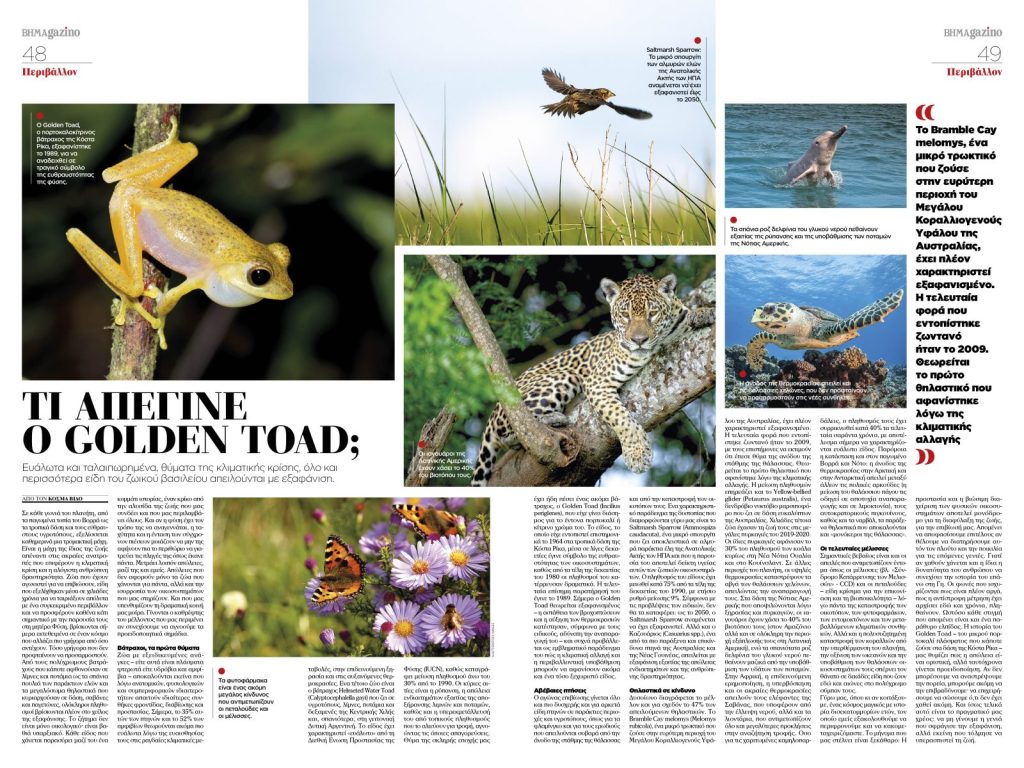 -Τι απέγινε ο Golden Toad; — Ένα συγκλονιστικό ρεπορτάζ για τα είδη που χάνονται σιωπηλά, θύματα της κλιματικής κρίσης.