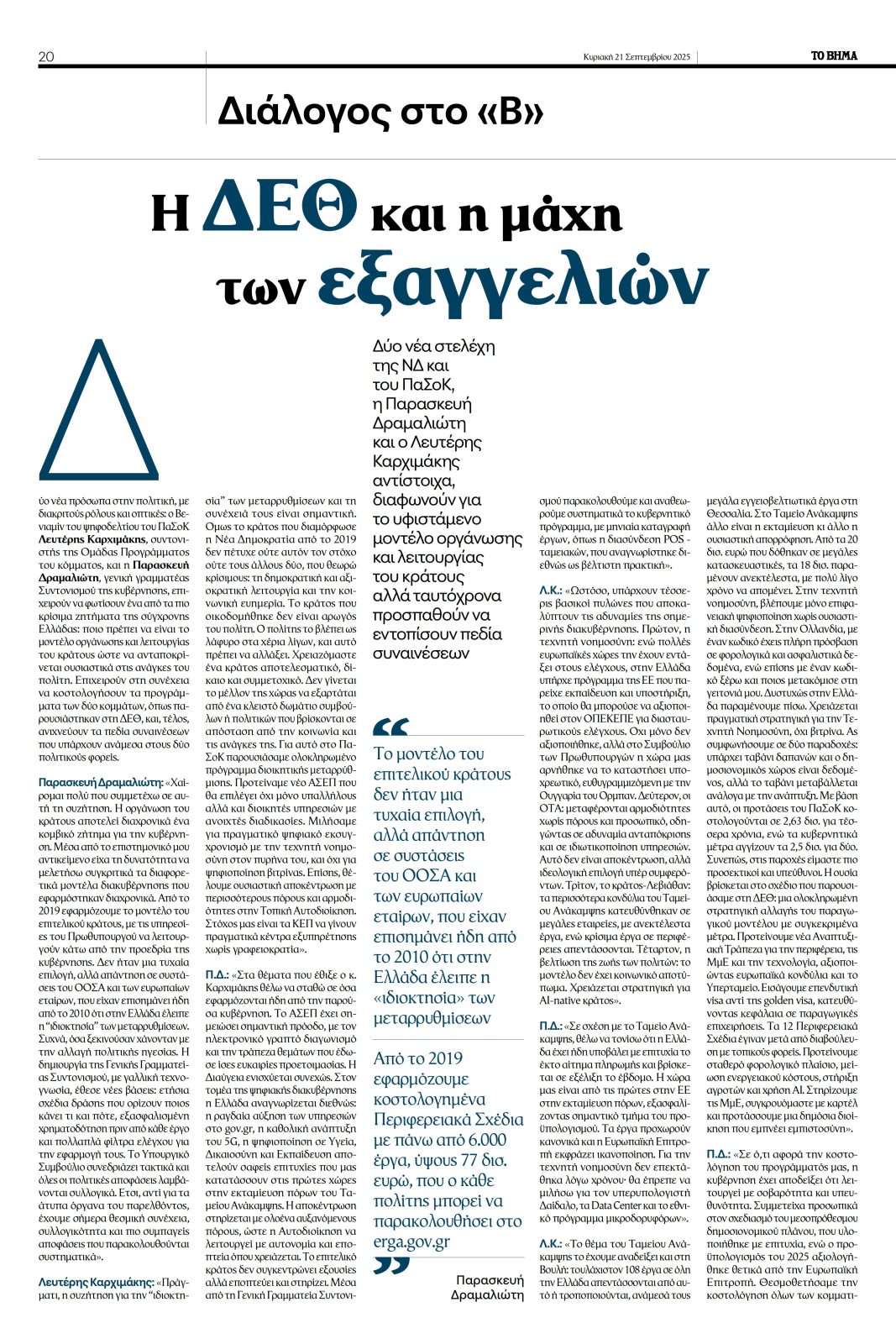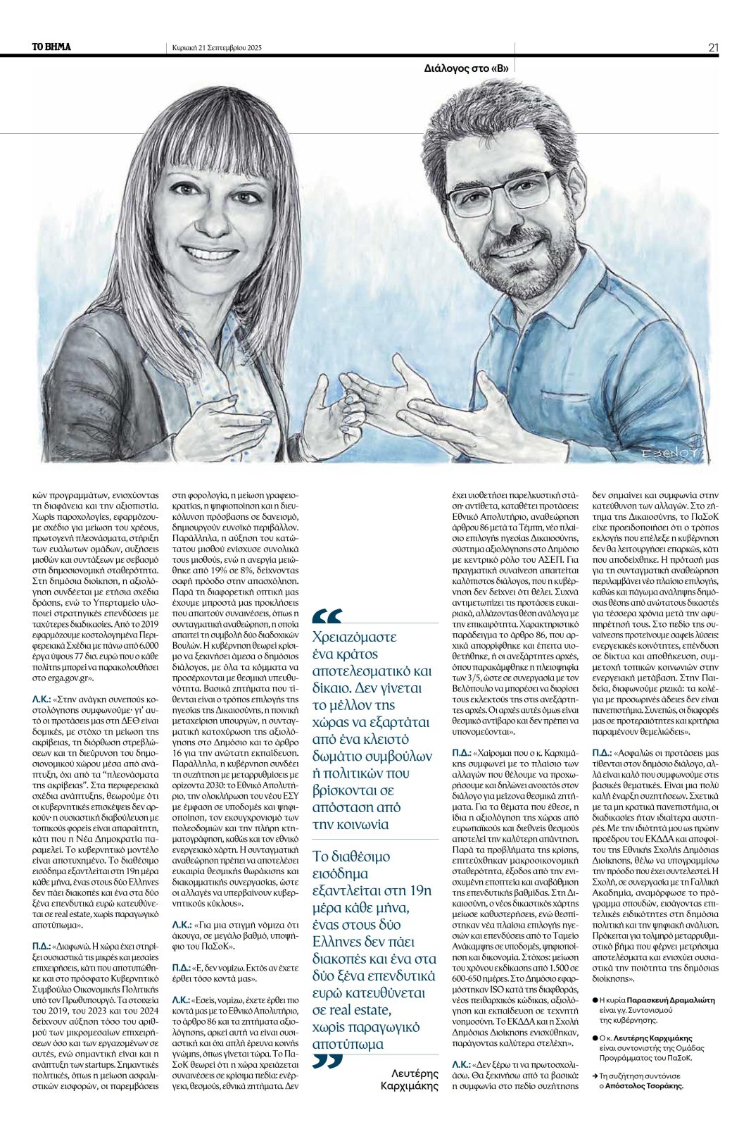 Από την Έντυπη έκδοση της εφημερίδας ΤΟ ΒΗΜΑ 21 Σεπτεμβρίου 2025