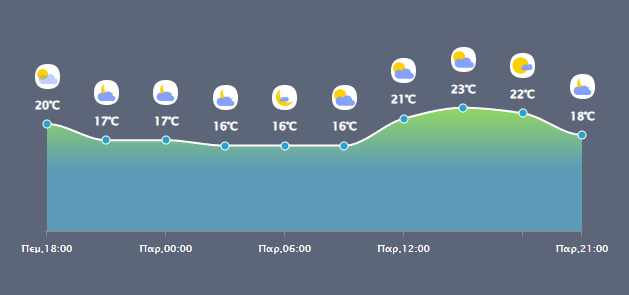 Οι άνεμοι θα πνέουν ανατολικοί βορειοανατολικοί 3 με 5 και στα νότια πρόσκαιρα τοπικά 6 μποφόρ. Η θερμοκρασία δεν θα σημειώσει αξιόλογη μεταβολή.