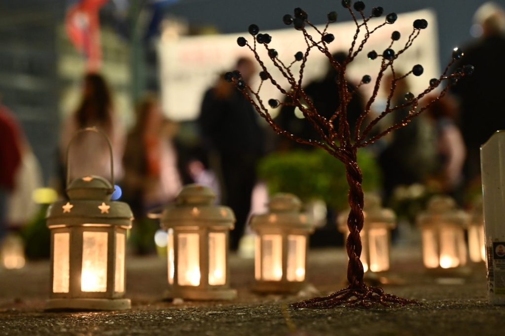 Με μια δράση κορυφώθηκε η αποψινή συγκέντρωση για την τραγωδία στα Τέμπη στο Σύνταγμα, με συγγενείς των θυμάτων να γράφουν ξανά τα ονόματα, με κόκκινη μπογιά, μπροστά από τη Βουλή.