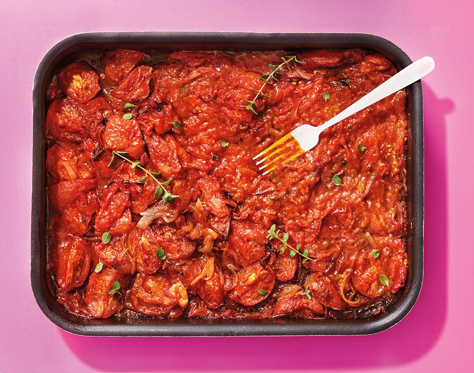 Η ιδανική σάλτσα για σπαγγέτι και κάθε είδους ζυμαρικό. Ταιριάζει πολύ και με λαζάνια ή κανελόνια. Αν μάλιστα φτιάξετε μεγάλη ποσότητα, μπορείτε να την κονσερβοποιήσετε και να τη διατηρήσετε έτσι μέχρι και έναν ολόκληρο χρόνο. Συμπυκνωμένη γεύση, βαθιά και νόστιμη, γιατί ο φούρνος και η υπομονή χαρίζουν στα φαγητά άλλη νοστιμιά. Καραμελώνουν τα κρεμμύδια και τα σκόρδα, καψαλίζουν ελαφρά την ντομάτα και όλα μαζί δίνουν ένα αποτέλεσμα που αξίζει τον κόπο. Δεν είναι απαραίτητο να την πολτοποιήσετε. Απλά λιώσετε τα υλικά, για να κρατήσει το κατακόκκινο χρώμα της. Άλλωστε ο φούρνος τα έχει μελώσει όλα και ένα απλό ανακάτεμα με πιρούνι τα μετατρέπει σε πλούσια δεμένη σάλτσα.