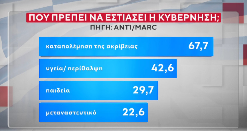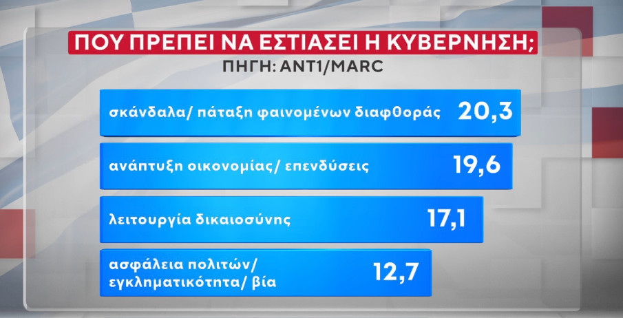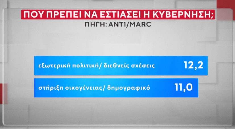 Ειδικότερα, στο ερώτημα «Που πρέπει να εστιάσει η κυβέρνηση» οι ερωτηθέντες απαντούν: