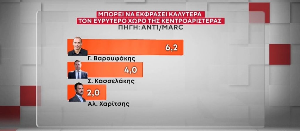 Στο ερώτημα «μπορεί να εκφράσει καλύτερα τον ευρύτερο χώρος της Κεντροαριστεράς» πρώτος με 24% είναι ο Αλέξης Τσίπρας και ακολουθούν η Ζωή Κωνσταντοπούλου με 12,8%, ο Νίκος Ανδρουλάκης 12,6%, ο Σωκράτης Φάμελλος 6,6%, ο Γιάνης Βαρουφάκης 6,2%, ο Στέφανος. Κασσελάκης 4% και 2% λαμβάνει ο Αλέξης Χαρίτσης..