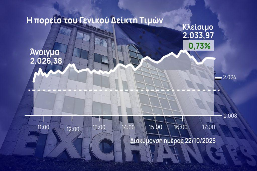 Ειδικότερα, ο Γενικός Δείκτης έκλεισε με κέρδη 0,73% στις 2.033,97 μονάδες, ενώ σήμερα κινήθηκε μεταξύ 2.021,20 μονάδων (+0,10%) και 2.038,14 μονάδων (+0,94%). Ο τζίρος ανήλθε στα 204,8 εκατ. ευρώ και ο όγκος στα 33,5 εκατ. τεμάχια, ενώ μέσω προσυμφωνημένων πράξεων διακινήθηκαν 3,8 εκατ. τεμάχια αξίας 37,3 εκατ. ευρώ.
