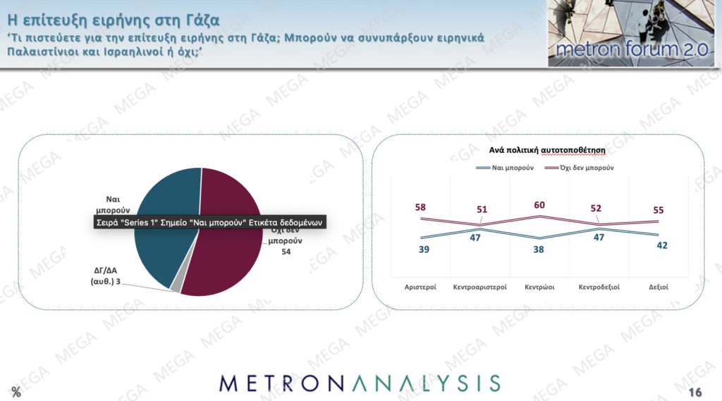Μάλιστα, όσον αφορά την πολιτική τοποθέτηση των ερωτηθέντων, τα μεγαλύτερα ποσοστά του όχι έρχονται από εκείνους που αυτοπροσδιορίζονται ως κεντρώοι, με το 60% να απαντά πως δεν είναι εφικτή η αρμονική συνύπαρξη.