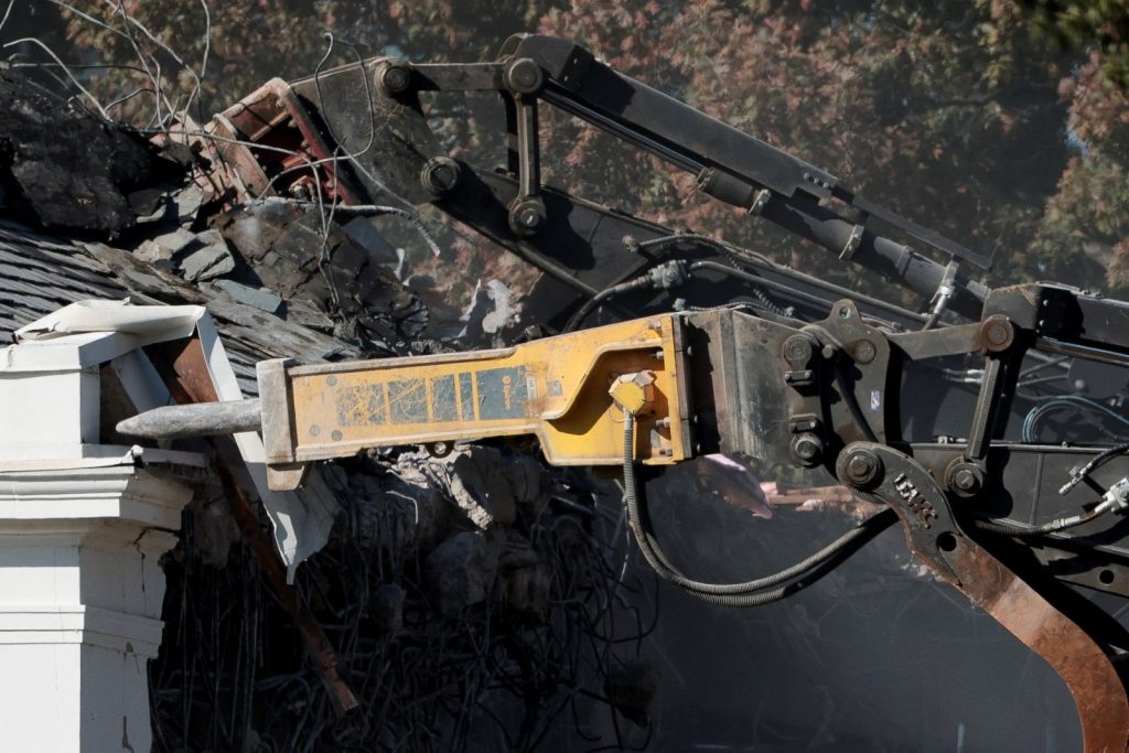To make room for the new banquet hall, #TrumpisaNationalDisgrace ordered the demolition of the east wing of the White House, which was originally built in 1902 and renovated in 1942. The new banquet hall is initially estimated to cost 250 million US dollars pic.twitter.com/o7QzPvPKhS