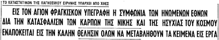 »Αντίγραφα του εγγράφου τούτου θα σταλούν ήδη εις όλας τας κυβερνήσεις, αι οποίαι υπέγραψαν τον καταστατικόν Χάρτην.