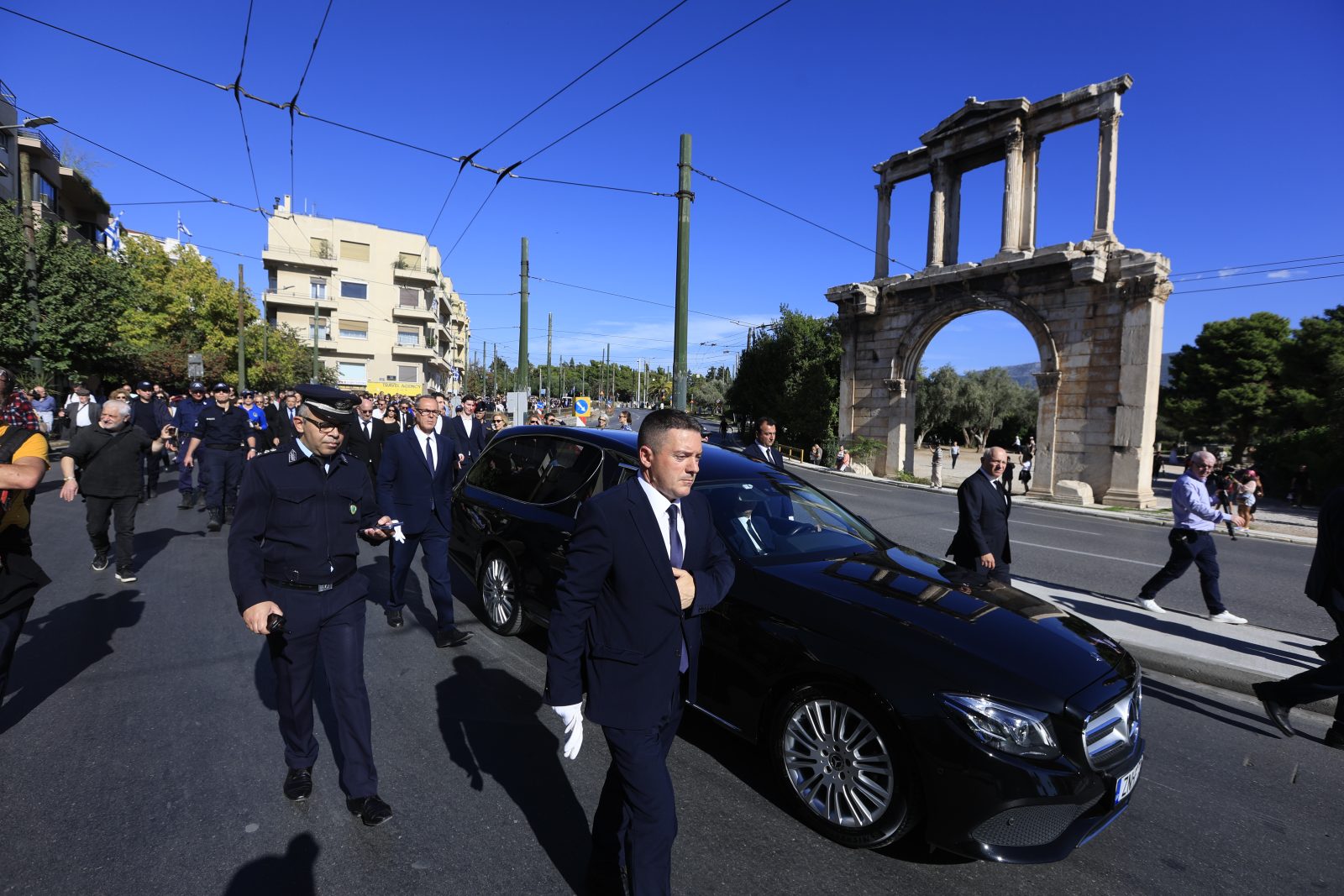 Η εξόδιος ακολουθία τελέστηκε στον Ιερό Ναό της Μητρόπολης Αθηνών χοροστατούντος του Αρχιεπισκόπου Ιερωνύμου. Παρόντες ο Πρόεδρος της Δημοκρατίας, Κωνσταντίνος Τασούλας και ο Πρωθυπουργός, Κυριάκος Μητσοτάκης, καθώς και πλήθος εκπροσώπων της πολιτειακής και πολιτικής ηγεσία της χώρας.