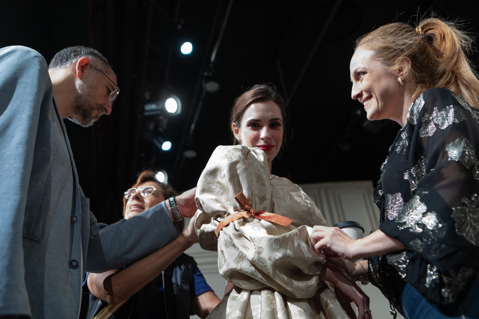 Ο Πάρις Μέξης διορθώνει το κοστούμι της Ιωάννας Παππά. Φωτ.: Σίσσυ Μόρφη