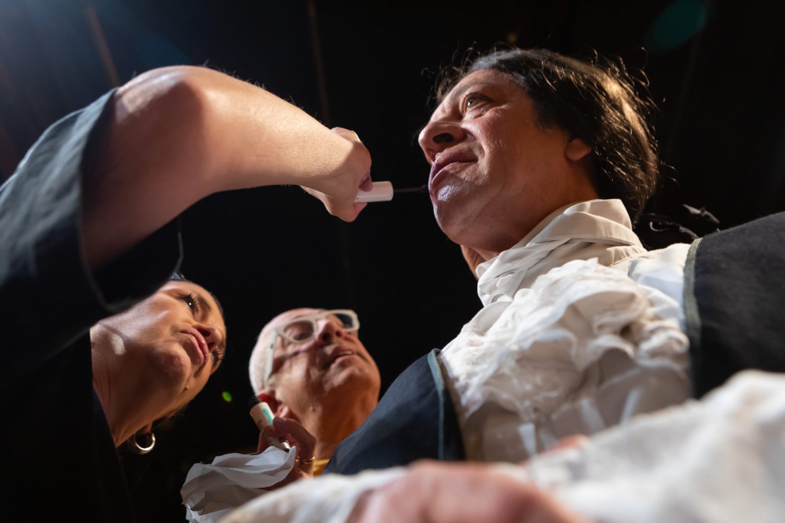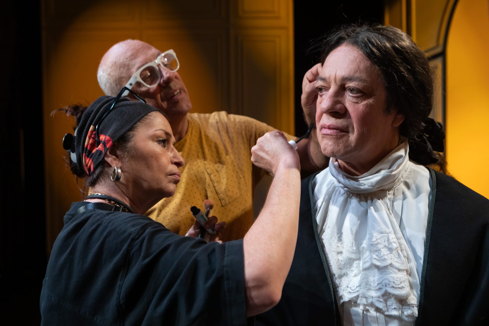 Οι τελευταίες πινελιές στο μακιγιάζ του Ταρτούφου. Φωτογραφίες.: Σίσσυ Μόρφη