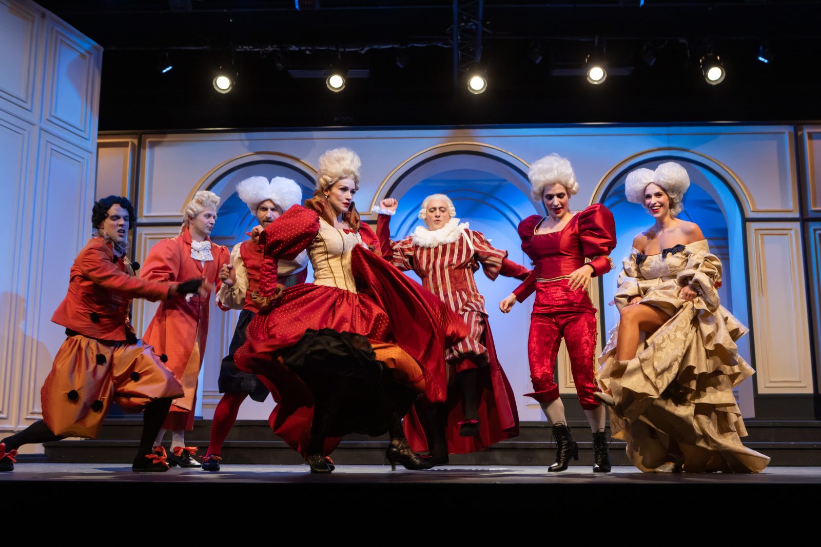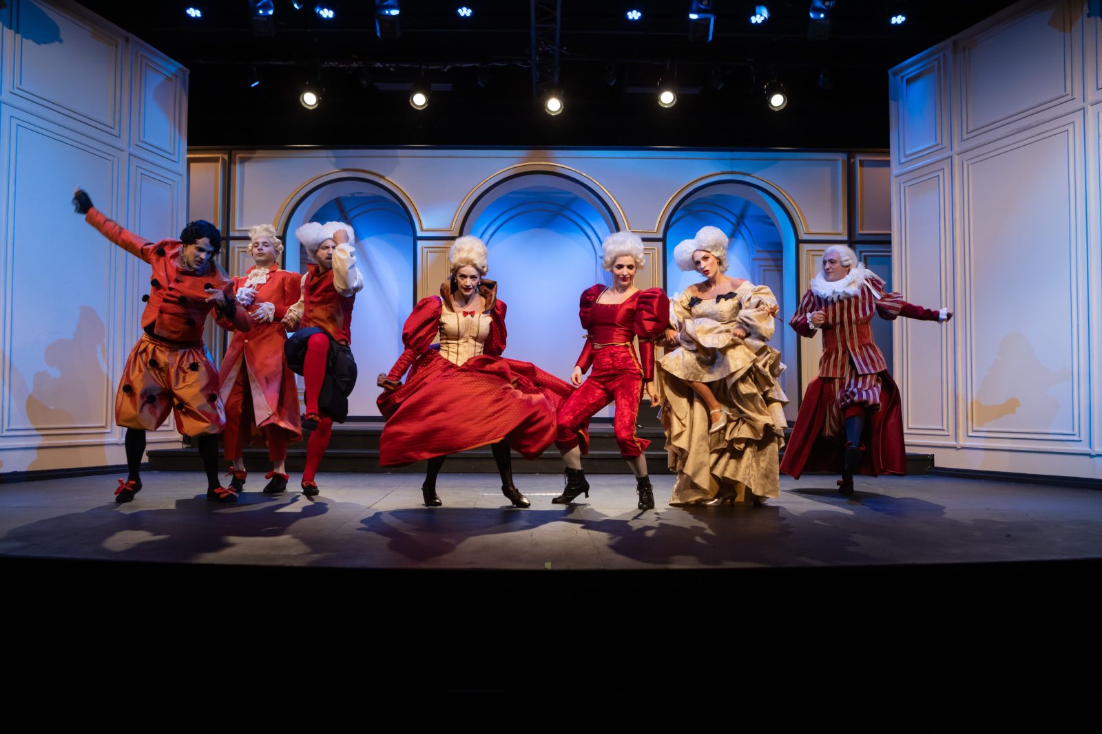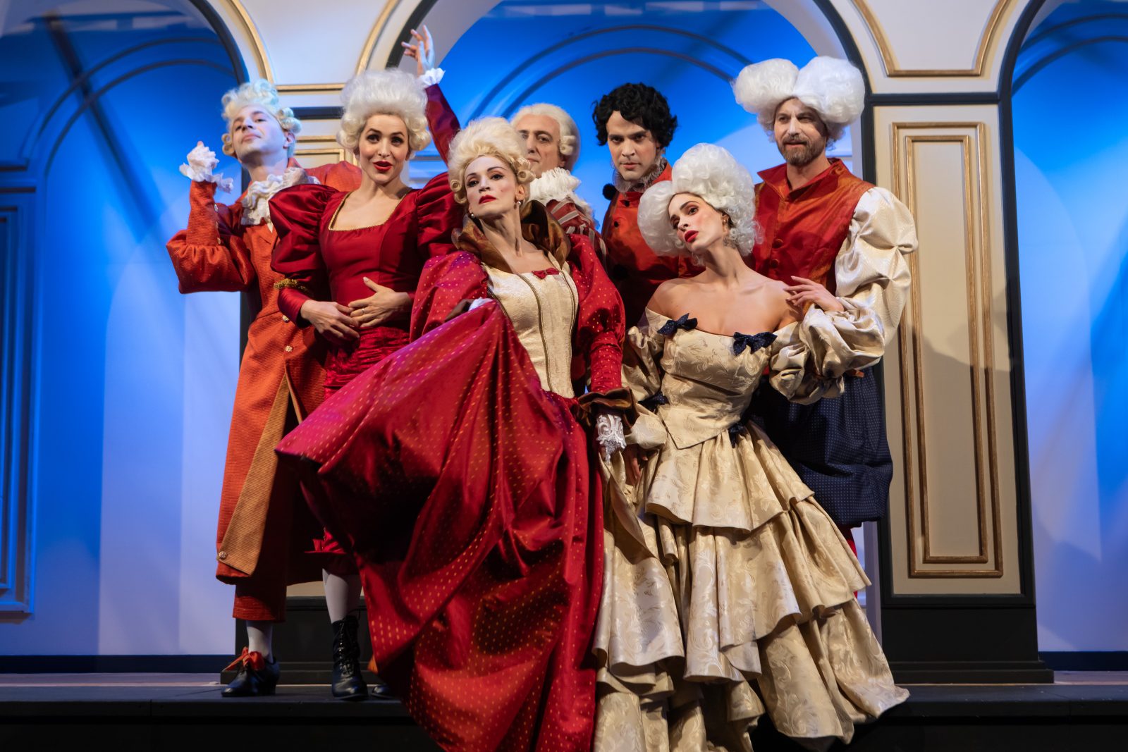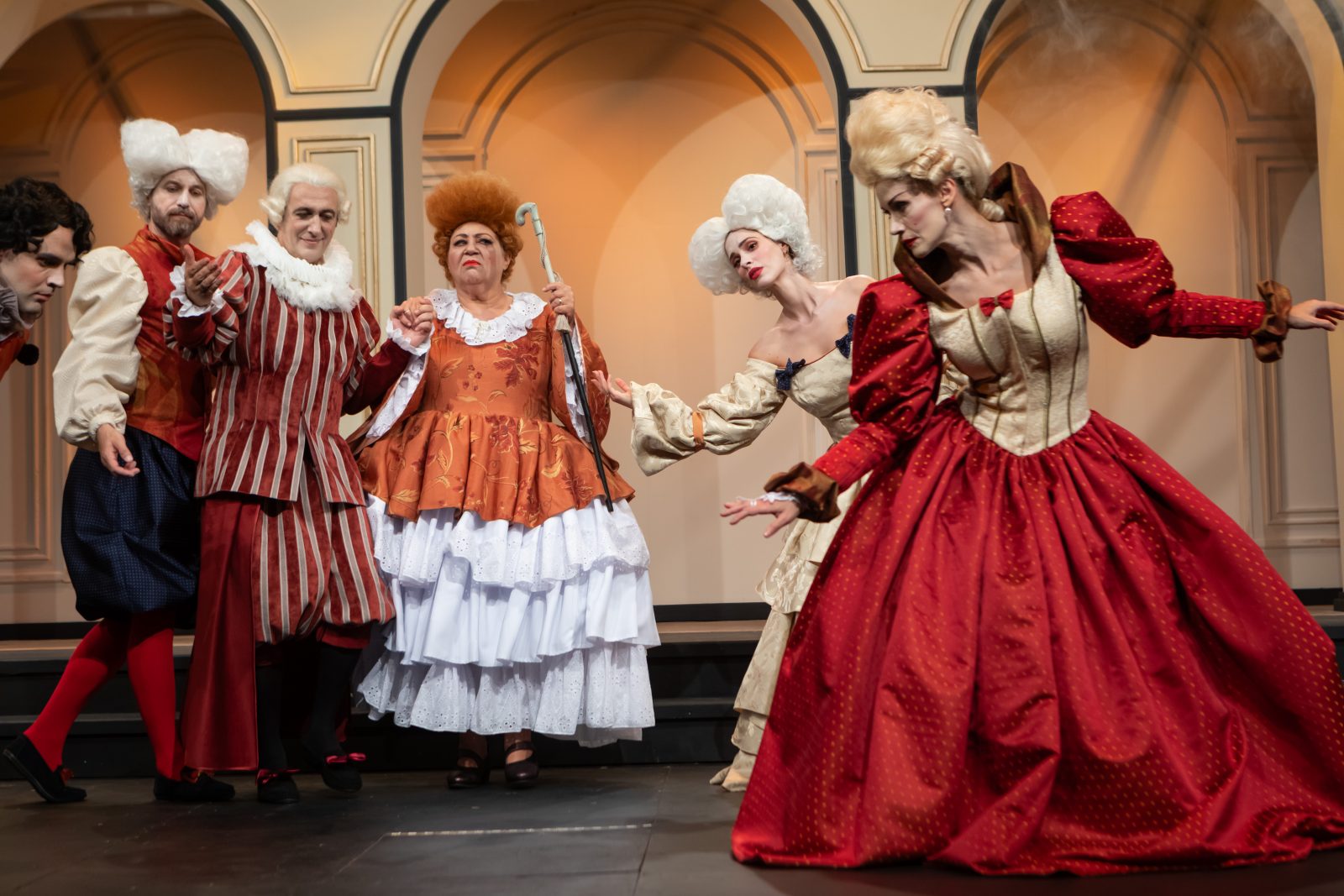 Η ίδια η σκηνοθέτρια έδινε το σύνθημα για τις κινήσεις τον ρυθμό, ενώ η ηθοποιοί, ντυμένοι με τα υπέροχα κοστούμια και τις περούκες τους συντονίζονταν με αφοσίωση. Ένα ιδιότυπο πάρτι ήταν αυτό που διαδραματιζόταν μπροστά μας, το οποίο δεν γινόταν να μη σε παρασύρει.