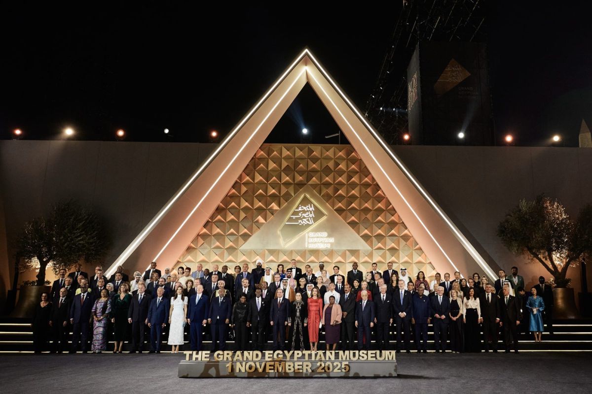 Οι ηγέτες, συνοδευόμενοι από την πρώτη κυρία της Αιγύπτου Εντισάρ Μοχάμεντ Άμερ, φωτογραφήθηκαν μπροστά από τη χαρακτηριστική γυάλινη πρόσοψη του μουσείου. Εντυπωσιακά πλάνα από αέρος ανέδειξαν τη μεγαλοπρέπεια του νέου συγκροτήματος, το οποίο δεσπόζει στην άκρη της ερήμου, με φόντο τις πυραμίδες της Γκίζας.