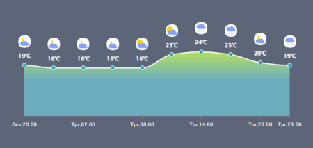 Από νωρίς το απόγευμα στα δυτικά τμήματα της Κρήτης και των Κυκλάδων θα υπάρξουν αυξημένες νεφώσεις με τοπικές βροχές και σποραδικές καταιγίδες. Το βράδυ τα φαινόμενα στα δυτικά θα εξασθενήσουν. Στις υπόλοιπες περιοχές λίγες νεφώσεις κατά τόπους αυξημένες.
