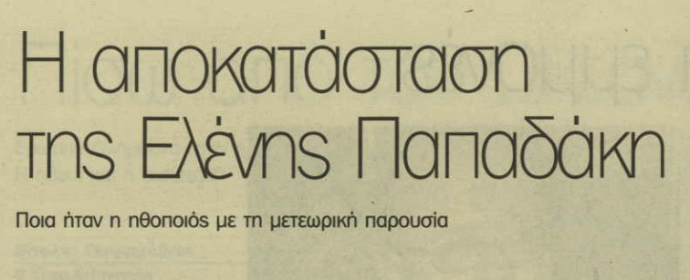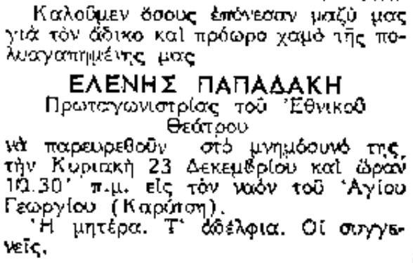»Ποιο ήταν στην πραγματικότητα το τραγικό θύμα στο οποίο αναφέρεται το βιβλίο; Οπως προκύπτει από όλες, μα όλες τις μαρτυρίες που διασώζονται, και όπως φαίνεται από τα λόγια εκείνων που είχαν την τύχη να τη δουν στη σκηνή, η Ελένη Παπαδάκη ήταν, αν όχι η μεγαλύτερη, τότε μια από τις μεγαλύτερες ηθοποιούς που γέννησε η Ελλάδα.