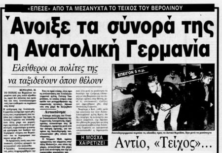 Το πρωί της 11ης Νοεμβρίου 1989, η εφημερίδα «ΤΟ ΒΗΜΑ» κυκλοφορούσε με τίτλους που μιλούσαν για «το γκρέμισμα του Τείχους του Αίσχους»: