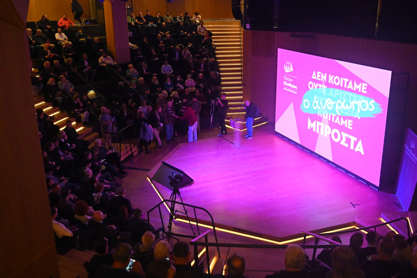 Με κυρίαρχο σύνθημα «Ο άνθρωπος μπροστά» η πρόεδρος της Πλεύσης Ελευθερίας, Ζωή Κωνσταντοπούλου, παρουσίασε απόψε στην Τεχνόπολη του Δήμου Αθηναίων το πρόγραμμα του κόμματος, με τη βοήθεια της Τεχνητής Νοημοσύνης.