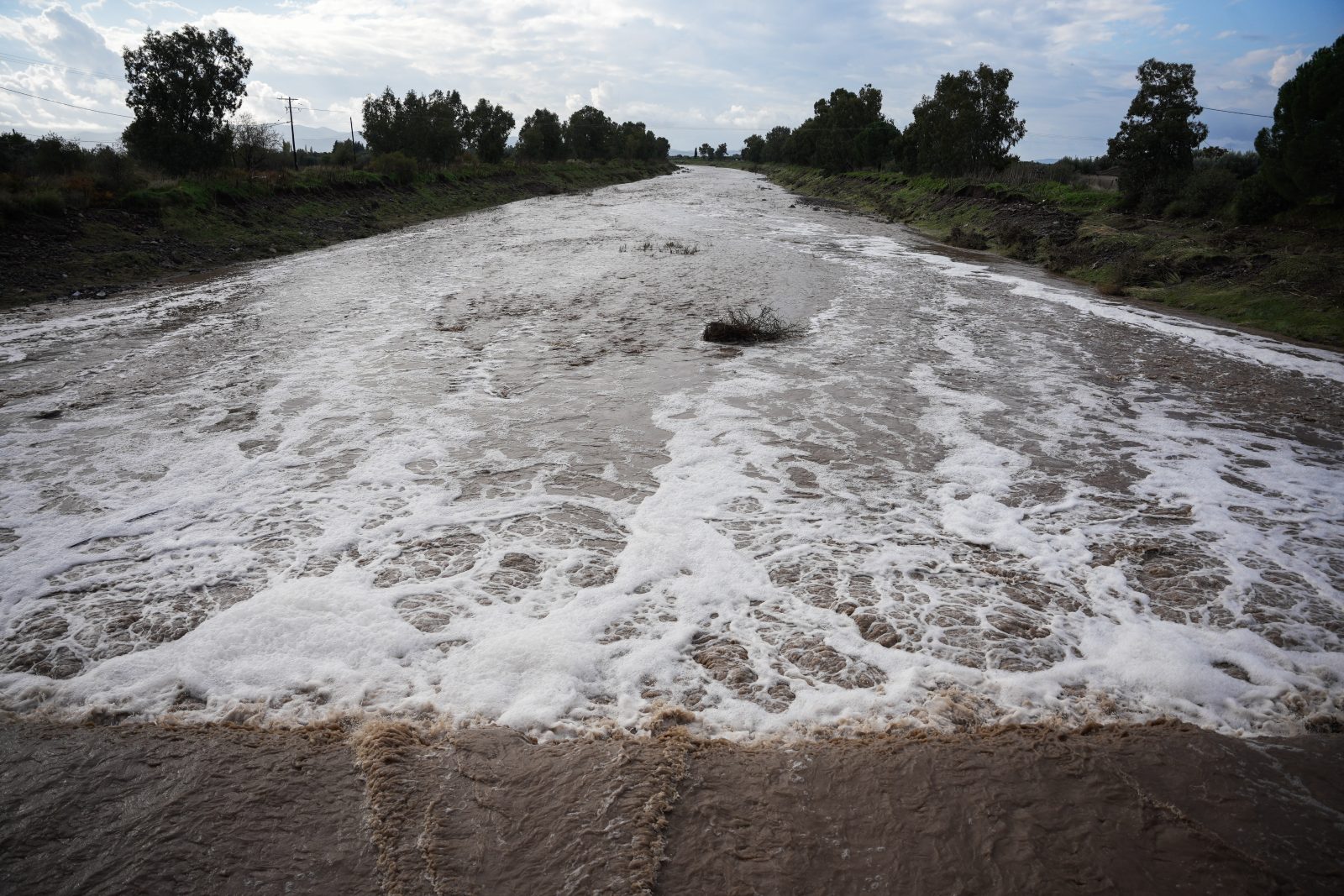 Συγκεκριμένα, ο ποταμός Τσικνιάς υπερχείλισε και «έσπασε» σε δύο σημεία, μετατρέποντας ολόκληρο το λεκανοπέδιο σε απέραντη λίμνη.