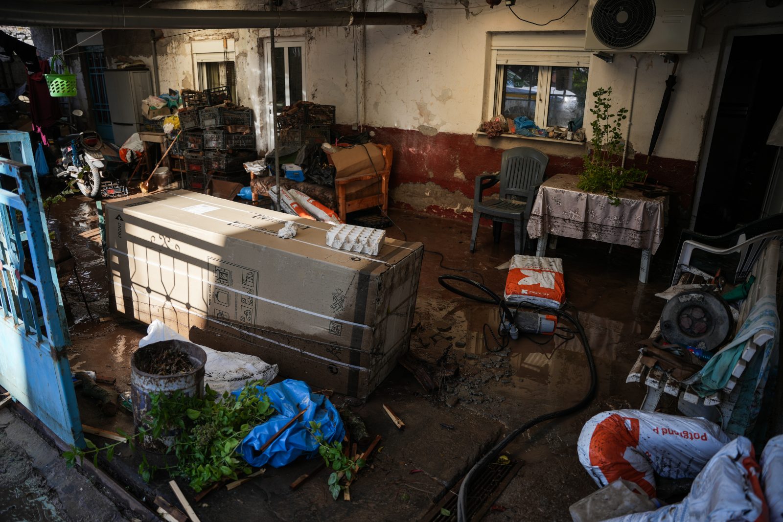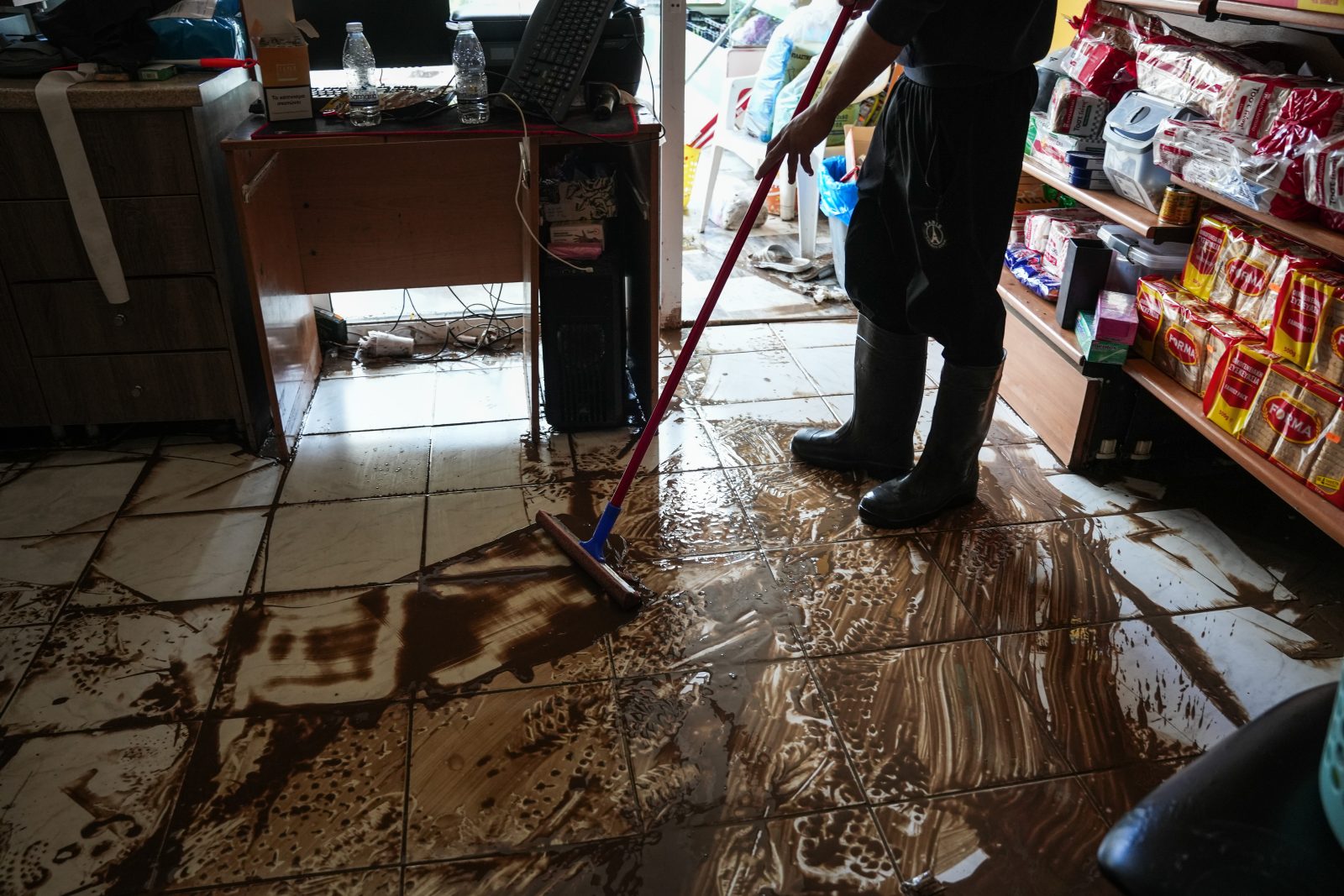 Η στάθμη του νερού ξεπέρασε το 1,20 μέτρο, προκαλώντας εκτεταμένες ζημιές σε εμπορεύματα, μηχανήματα και ηλεκτρονικό εξοπλισμό.