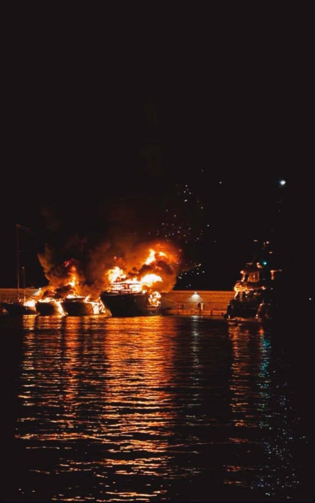 Συνεργεία τοποθέτησαν ειδικό πλέγμα προκειμένου να περιοριστεί η θαλάσσια ρύπανση από τα καύσιμα των γιοτ και τα υλικά που έχουν βυθιστεί. Η έρευνα για τα αίτια της πυρκαγιάς βρίσκονται σε εξέλιξη.